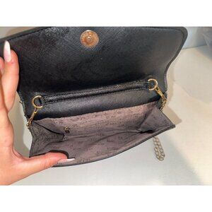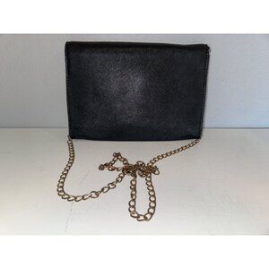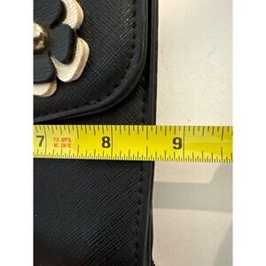 Vintage Purse Small Black Leather Flower Applique Party Cocktail Shoulder Chain