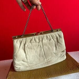 (1) Cream Colored Clutch-Used with some signs of wear