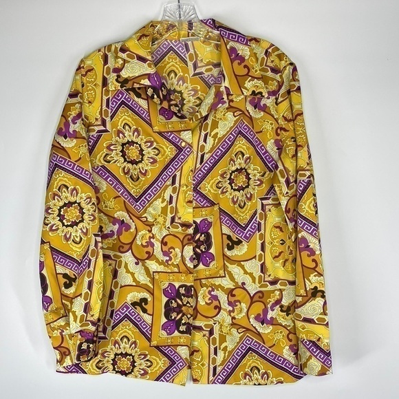 Vintage Pykettes Long Sleeve Yellow Purple Secretary Grannycore Blouse