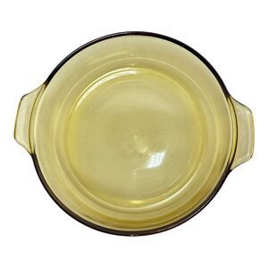 This versatile dish is perfect for baking, serving, or even as a decorative piece in your kitchen. Its amber glass color not only looks elegant but is also highly functional. This dish is ideal for collectors of vintage kitchenware or those who appreciate the charm of mid-century design.