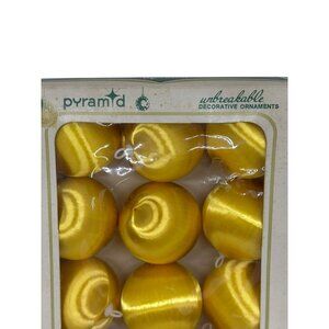 Beautiful vintage Pyramid gold satin-sheen unbreakable Christmas ornaments in their original box. A timeless addition to your holiday décor.
