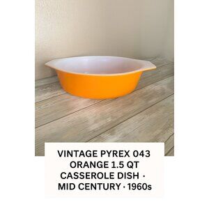 Vintage Pyrex 043 Orange 1.5 Quart Oval Casserole Dish – Made in USA