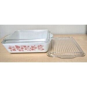 Vintage Pyrex 0503 Pink Gooseberry 1-1/2 Qt Ovenware Dish with Extra Lid
