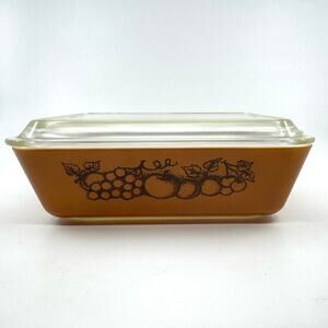 Vintage Pyrex 1974-1978 Old Orchard Pattern Refrigerator Dish with Lid Ovenware