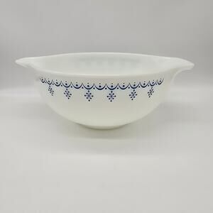 Vintage Pyrex 443 2.5qt Pint Snowflake Garland Cinderella Mixing Bowl Blue White