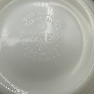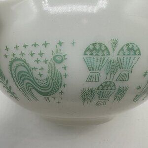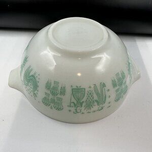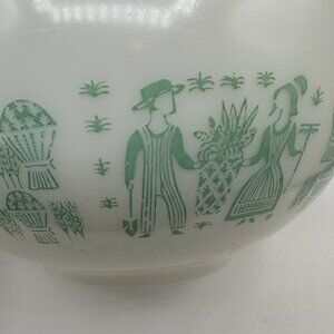 Vintage Pyrex #443 Amish Butterprint Cinderella Mixing Bowl 2-1/2 qt TurquoiseNo chips or cracks print mostly intact, has scratches on inside from use, outside few light scratches. The color is lighter than I usually see in the Amish print. Overall great condition see photos