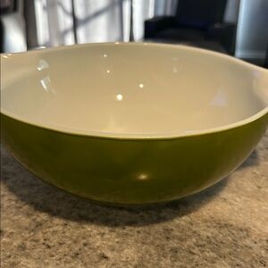 Vintage Pyrex Verde green #444 Cinderella bowl in near perfect condition, like brand new , took a picture of the tiny scratch but this is a real beauty.
