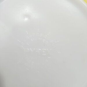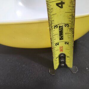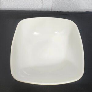 Vintage Yellow/green square bowl. Bowl measures roughly 9 inches across and 3.25 inches in diameter. There are various minor scratches throughout the outer finish, but is overall in wonderful condition for its age and previous usage.