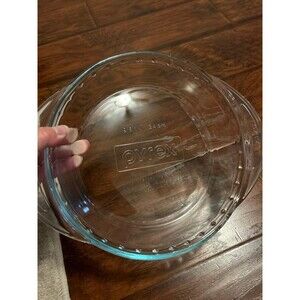 Vintage Pyrex 9.5 " Glass Deep Dish Pie Plate with Fluted Edge & Handles #2229