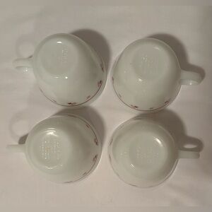 Vintage Pyrex Burgundy Rose Milk Glass Cups, from the 1980s. Has a floral & leaf pattern in burgundy around the rim. Each cup measures approx. 2-5/8”H, 4”W, and holds approx. 7oz’s. Stamped Pyrex on the bottom. In excellent pre-owned vintage condition.