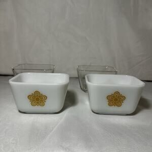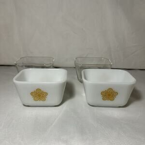 Vintage Pyrex Butterfly Gold 501-B Refrigerator Dish Set Of 2 No Lids & 2 Clear
