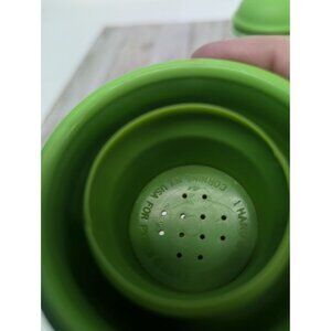 Add a touch of nostalgia to your kitchen with this vintage Pyrex Corning Glass Mushroom Salt & Pepper or Spice Shaker Set. Featuring green plastic tops, this charming set is perfect for collectors and retro enthusiasts.