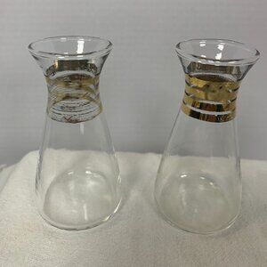 Vintage Pyrex Cruette Bottles Gold Stripes 4.5” Glass USA MCM Oil Vinegar Cruet