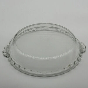 Measuring at 9 1/2 inches in diameter, this round pie pan is perfect for baking your favorite pies. The vintage original production style and fused glass production technique make it a unique piece. This Pyrex plate is a must-have for collectors and home chefs alike.
