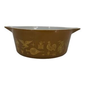 Vintage Pyrex Early American 2.5 Quart Casserole Colonial Brown & Gold