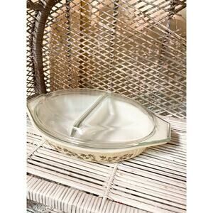 Vintage Pyrex Golden Acorn, Divided Casserole, Gold Oak Leaves and Acorns