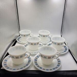Vintage Pyrex JaJ Chelsea Pattern Mug & Saucers - set of 6 (12 pieces)