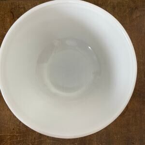 This solid white bowl has no markings on the bottom, which is a hallmark of a true Pyrex Opal bowl.