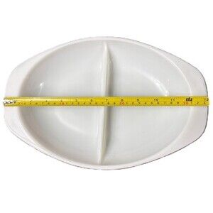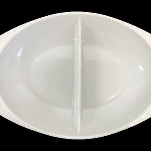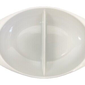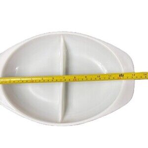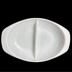 Vintage Pyrex Milk White Divided Glass Oval Casserole Dish