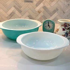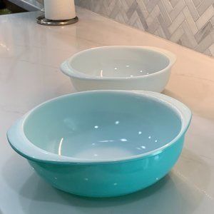 Vintage Pyrex Set: Robin's Egg Blue Bowl AND White Opal ware (023 & 024)