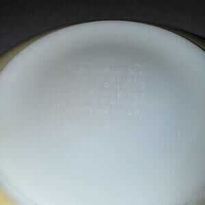 The LARGEST Vintage Pyrex Shenandoah Cinderella Nesting Mixing Bowl in yellow is round, glossy milk glass bowls with a retro style design.