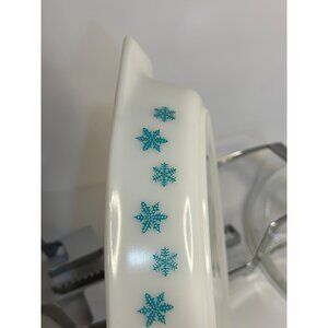 TAGS: #Pyrex, #VintageKitchen, #SnowflakePattern, #CasseroleDish, #RetroCookware, #HolidayServing, #CollectibleKitchenware TEMP6