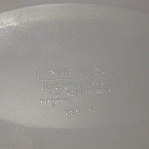 This Pyrex MMG platter was generally used at lunch counters in the 1960's. The MMG stands for the merger of McCrory's, McLellan and H.L. Green. This platter does have the expected scratches and blemishes of a platter that was used in such endeavor. This platter also has a small chip on the right hand end that I have tried to show in the images. It is not a large chip but can be seen and is felt. This platter is about 9.25 inches wide and about 7 inches across.