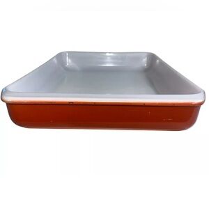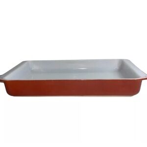 Vintage Pyrex Terra Cotta Orange Rectangular Baking Dish 3 Qt #18 - White Interior - USA Made