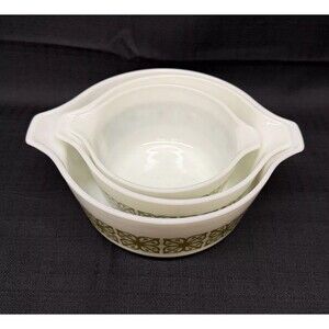 Vintage Pyrex Verde Cinderella Casserole Set 473 474 475 No Lids Mixing Bowls