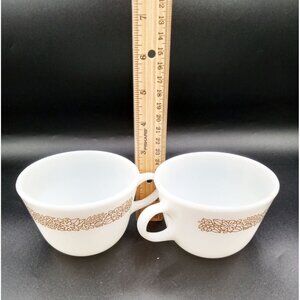 These charming coffee cups evoke nostalgia, crafted from Pyrex milk glass with a lovely floral design. Their durable build ensures long-lasting use.