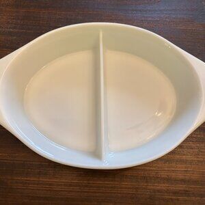 This Vintage Pyrex Yellow 1.5 Quart Divided Casserole Dish is a classic piece of American-made mid-century modern decor. With its glossy yellow color and elegant oval shape, this oven-safe casserole is perfect for serving up meals in style. The Pyrex brand is synonymous with quality, and this original piece from the 1970s is a must-have for collectors of vintage cookware. Hand wash only to preserve its beauty for years to come.