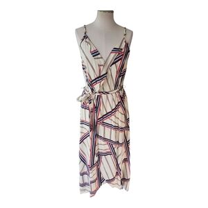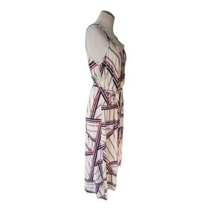 Vintage Q&A Striped Sleeveless V-Neck Dress L, Classic Summer Style