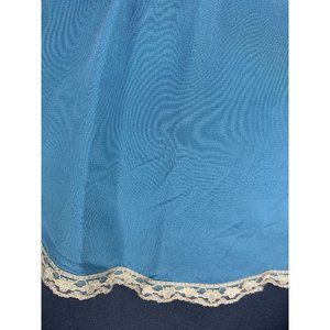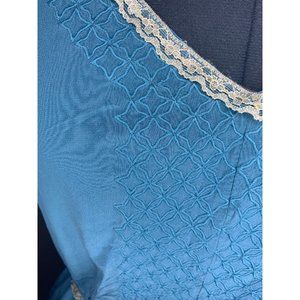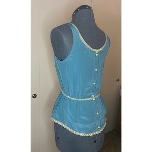 Vintage QS Silk Tank Peacock Blue Gray Lace Trim & Buttons Sleeveless Top Size S