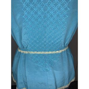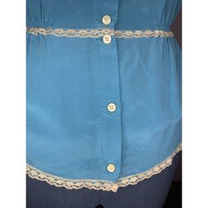 Vintage QS Peplum Peacock Blue Gray Lace Trim and Buttons Sleeveless Top Size S.