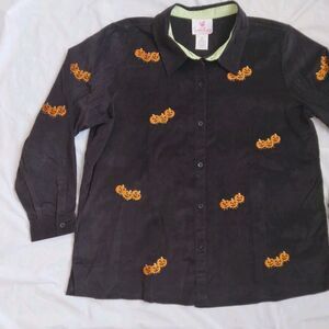Vintage Quacker Factory Black Corduroy Shirt Jack O Lanterns Embroidered 1X.