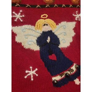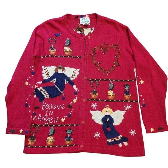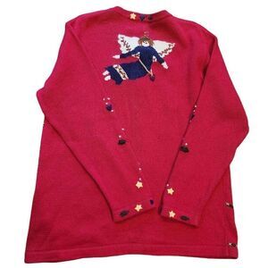 Vintage Quacker Factory Cardigan Sweater Women's Medium Red Angel Christmas