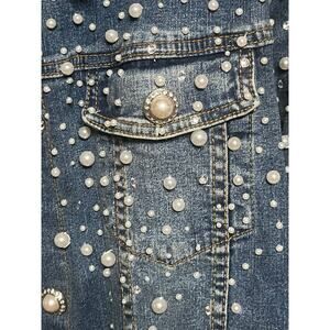 Vintage Quacker Factory Denim Jacket 1X – Pearl & Rhinestone Embellished Jean Jacket, Y2K Glam Western Bling Jacket, Plus Size