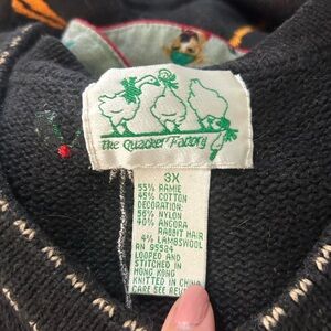 Nostalgic black knit sweater with gingerbread patches. Features intricate decorative stitching. Perfect for the holiday season/holiday parties. Vintage, in very good condition. Wear noted in pics. Cotton blend.