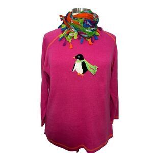 Vintage Quacker Factory Hot Pink Penguin Sweater -- 1X