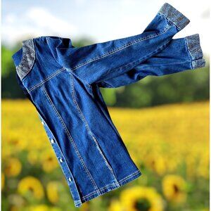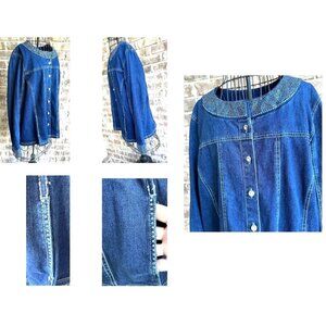 Vintage Quacker Factory Jean Jacket Large Blue Denim Embellished Front Button