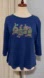 Charming navy top with colorful birdcage embroidery front and back. Features long sleeves and a round neckline.