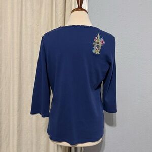 Vintage Quacker Factory Navy Top with Beautiful Birdcage Embroidery 3/4 Sleeve M