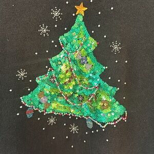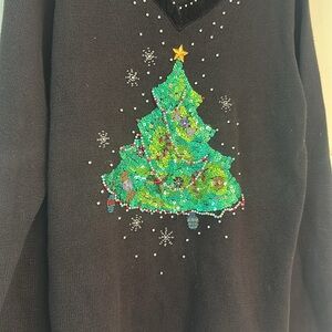 Vintage Quacker Factory Sequin Christmas Tree Sweater size Large
