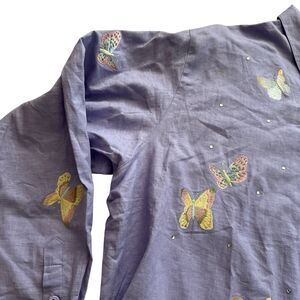 Vintage Quacker Factory Shirt Women 2Xl Purple Butterfly Embroidery Beautiful