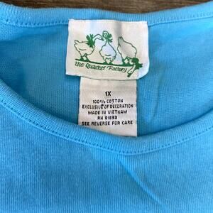 Add a touch of sparkle to your wardrobe with this adorable vintage Quacker Factory top! This women's blue top features 3/4 sleeves and a charming cherry design embellished with rhinestones. It's a size 1X and in excellent condition. This top is sure to bring a smile to your face and add a pop of fun to any outfit!