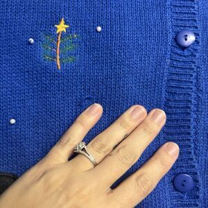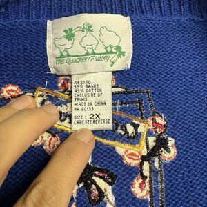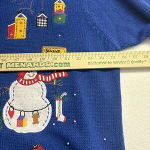 Vintage Quaker Factory Christmas Sweater Knit Beaded Cardigan Snowman Blue SZ 2X