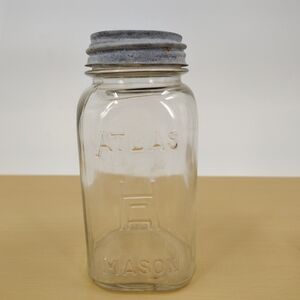 Vintage Quart ATLAS STRONG MASON Clear Glass Canning Jar Square Jar