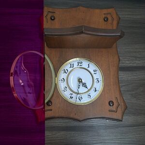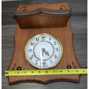 This Vintage Quartz Wall Clock is a charming and classic addition to any room, featuring a brown and gold wooden frame with a brass finish. The clock is powered by a battery-operated quartz movement, ensuring accurate timekeeping. With its vintage retro style and late 20th-century era design, this clock is perfect for collectors or those looking to add a touch of nostalgia to their decor. The clock also includes a shelf for displaying small items, making it a functional.