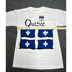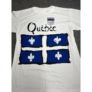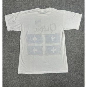 Vintage Quebec Puff Print White Graphic T-Shirt Single Stitch Size Medium
