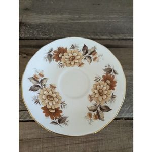 Vintage Queen Anne Bone China Teacup and Saucer 8620 / Brown Flowers Gray Leaves / gilded / Gold trim / Made in England